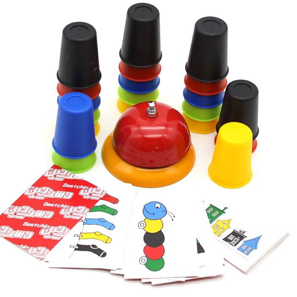 بازی تیزچین بازی کنان را در جهت تقویت تمرکز و سرعت عمل بیشتر یاری میکند . اقلام موجود در بسته بندی این بازی شامل : 24 عدد لیوان در 6 رنگ مختلف (4 سری در 6 رنگ )،25 عدد کارت بازی ، یک عدد زنگ فلزی می باشد.