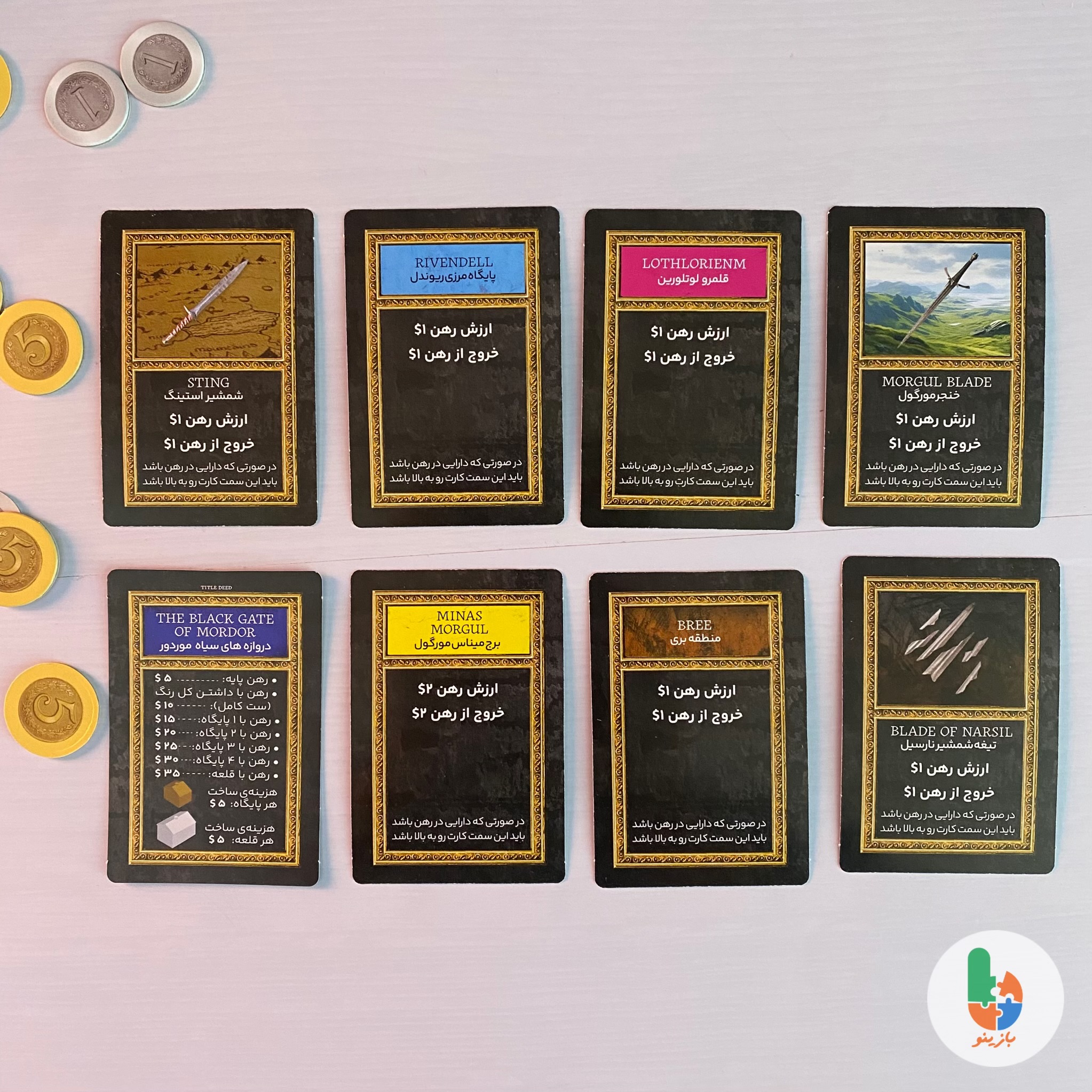 8.حلقه‌ی یگانه با کارت یا خانه خاص به دست می‌آید و توانایی‌های ویژه می‌دهد، اما خطر فعال شدن چشم سائورون وجود دارد.