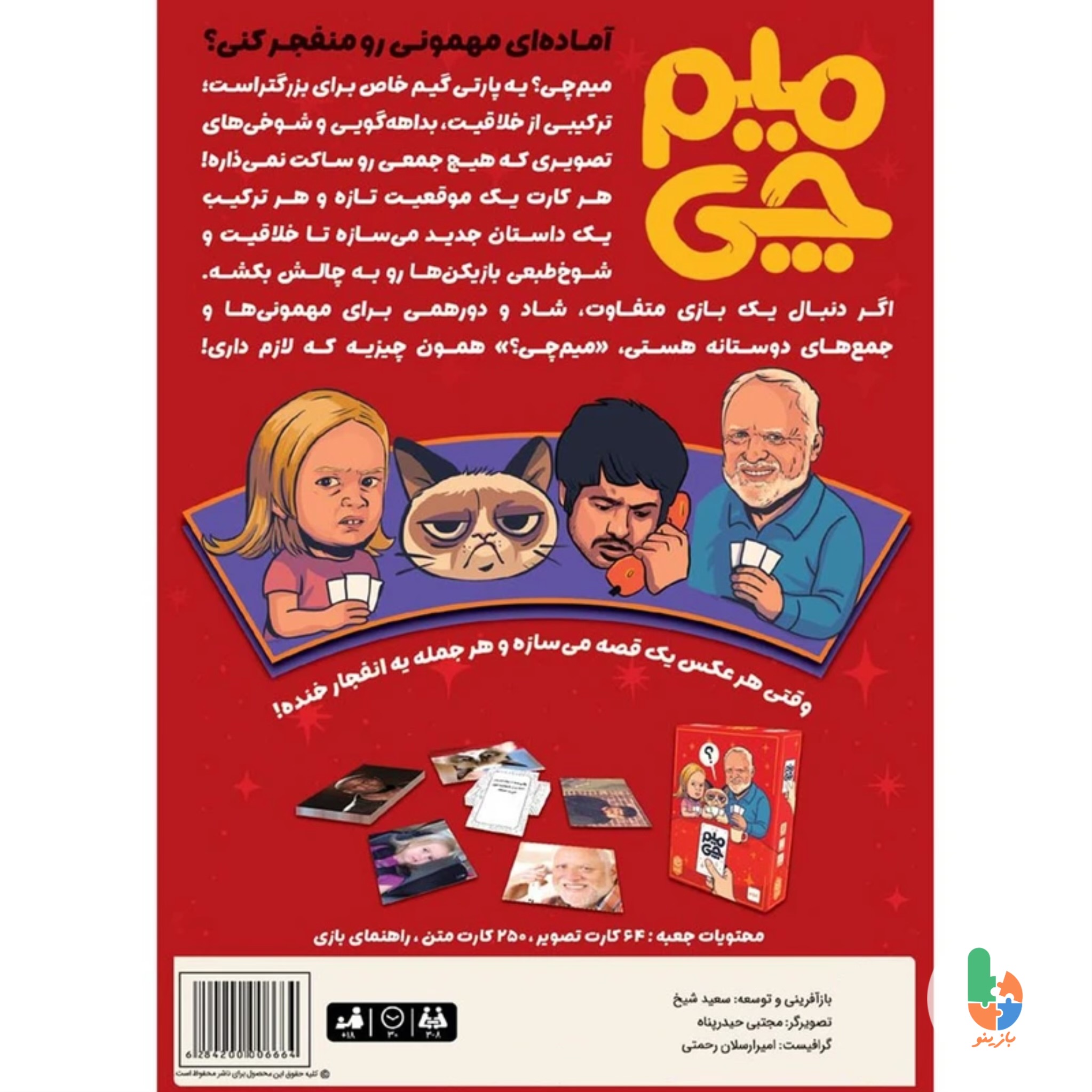 بازی «میم چی؟» انتخاب عالی برای دورهمیهای دوستانه، مهمونیها و شبهای پرخندهست. یادگیریش خیلی راحته، ولی نتیجه همیشه غیرقابل پیشبینی و بامزهست!